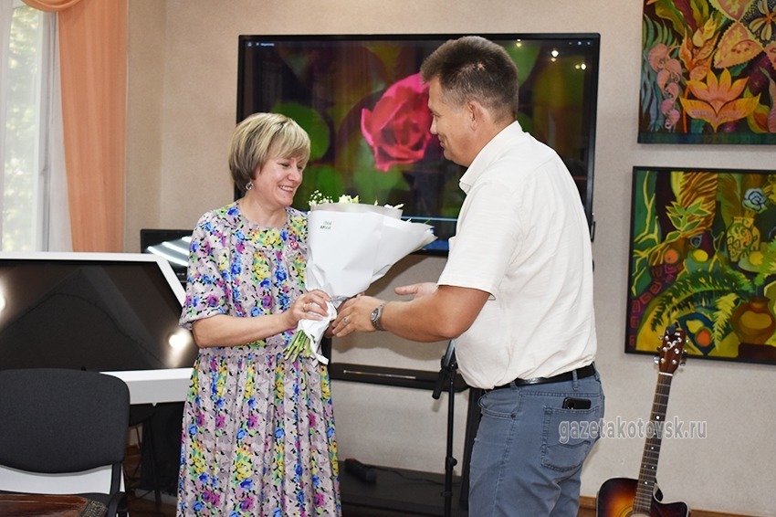 С открытием выставки в Котовске Ирину Пугачёву-Миронову поздравил директор детской художественной школы № 2 Михаил Никольский, друзья и коллеги.