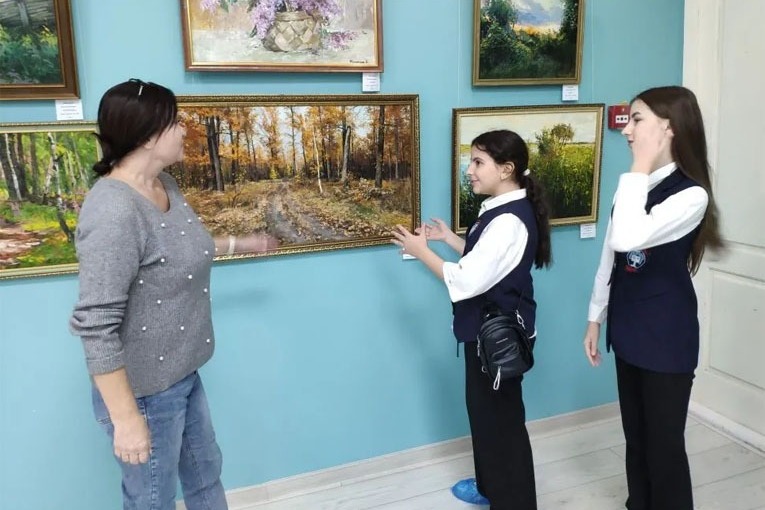 Гости из Воронежа стали участниками интерактивно-познавательной программы «Урок прекрасного». В её основу была положена недавно открытая персональная выставка местного мастера кисти, члена Союза художников России Виктора Миломаева «Жизнь в искусстве. Искусство в жизни». Ребята не были просто созерцателями картин, они активно включились в разговор о прекрасном, в который их вовлекла экскурсовод Светлана Зимина.