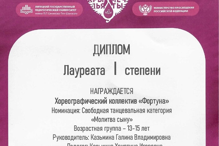 Конкурс проводился в стенах Липецкого государственного педагогического университета имени П.П. Семенова-Тян-Шанского. «Фортуна» представила жюри и публике хореографический номер «Молитва сыну», посвящённый 80-летию Великой Победы и Году защитника Отечества. У котовчан, уже видевших постановку, она оставила неизгладимое впечатление. Неменьший эффект произвело выступление «Фортуны» теперь и на липецкой сцене.