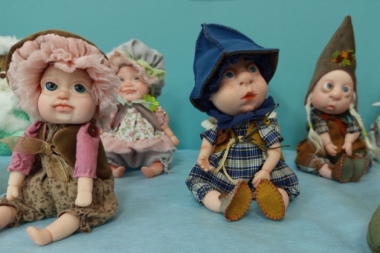 В центре особого притяжения оказались необычные работы Ирины Барымовой. Покоряют милые, непосредственные лица её авторских кукол-детишек, изготовленных из запекаемого пластика. Красота нарядов лишь усиливает впечатление.