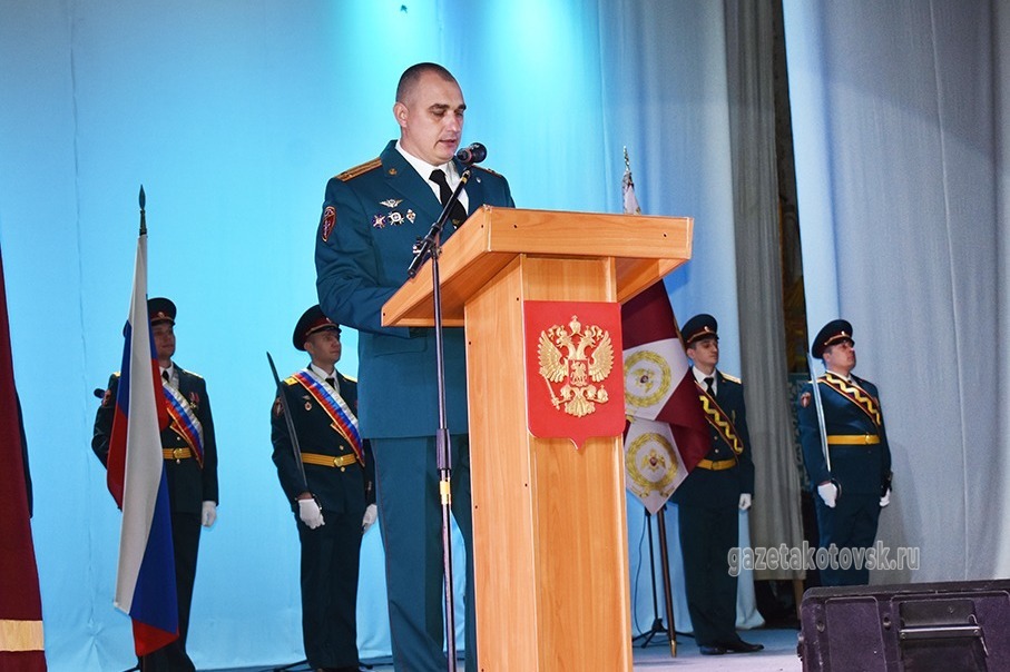 На сцену ДК внесли флаг РФ и боевое знамя. Заместитель командира 95-й ордена Жукова дивизии войск национальной гвардии Российской Федерации по военно-политической работе полковник Вадим Герасимов вручил грамоту Президента РФ и боевое знамя командиру 434 отдельного батальона войск национальной гвардии Российской Федерации подполковнику Николаю Алёшину. Прозвучал гимн Российской Федерации.