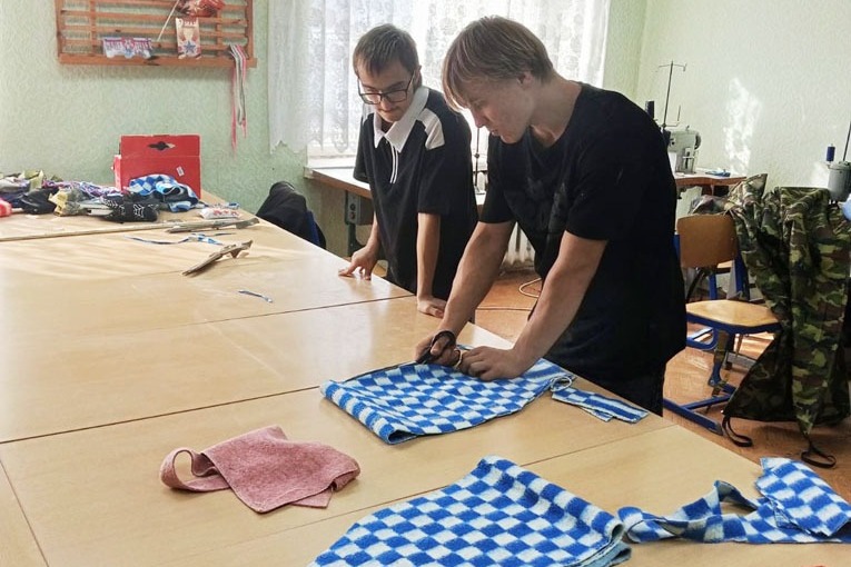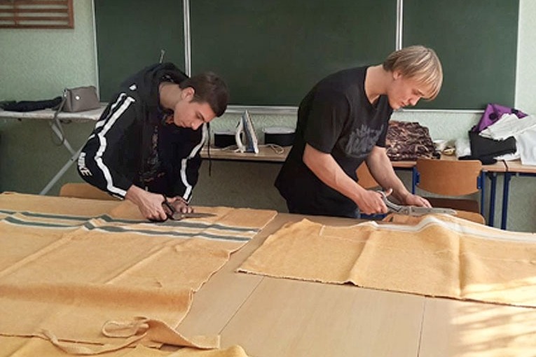 Дизайн-студия «Мастерица» располагается в одном из помещений техникумовского общежития. Проживающие здесь молодые люди тоже участвуют в раскройке и пошиве изделий, необходимых на передовой.