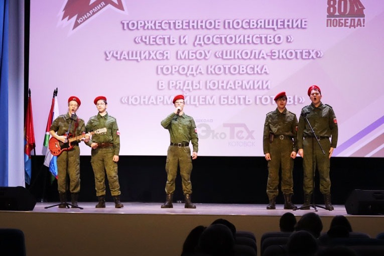 День посвящения в юнармейцы запомнится ученикам школы-ЭКОТЕХ и патриотическими выступлениями школьного танцевального ансамбля «Мотив» и вокального ансамбля старшеклассников.